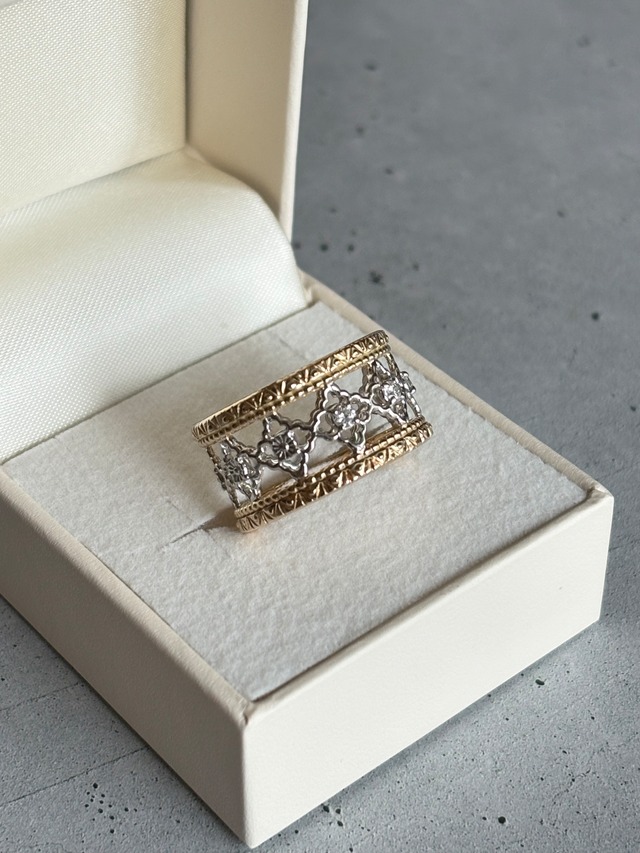 K10YG×WG×Dia5石フィレンツェ彫りリング