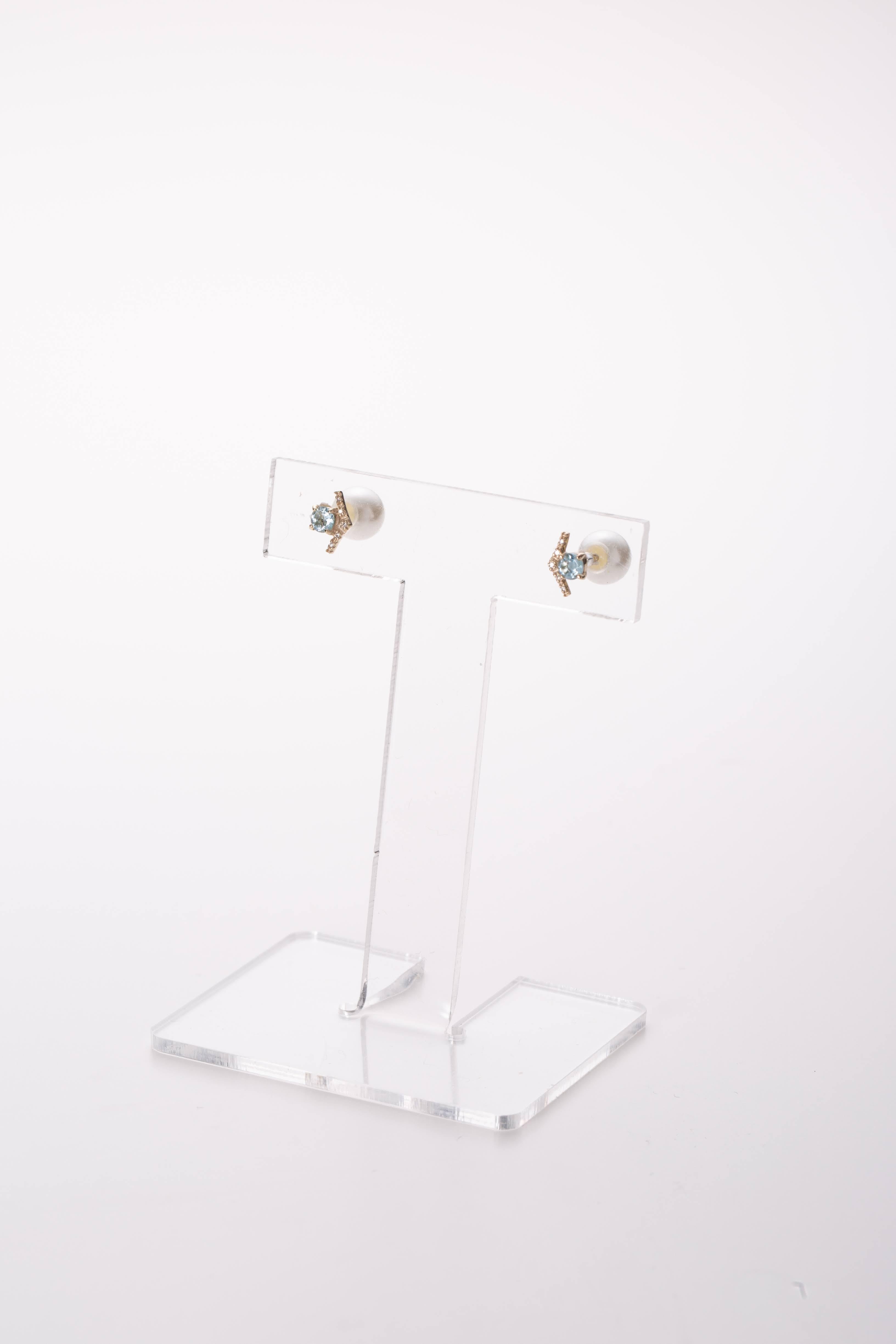 美しい輝きを放つダイヤと、爽やかなブルーのアクアマリンのポストに淡水パールキャッチを組み合わせたピアス。ダイヤの煌めきと、アクアマリンの色合いが耳元を華やかに演出します。デイリーユースにはもちろん、特別な日のコーディネートにもぴったりなアイテムです。