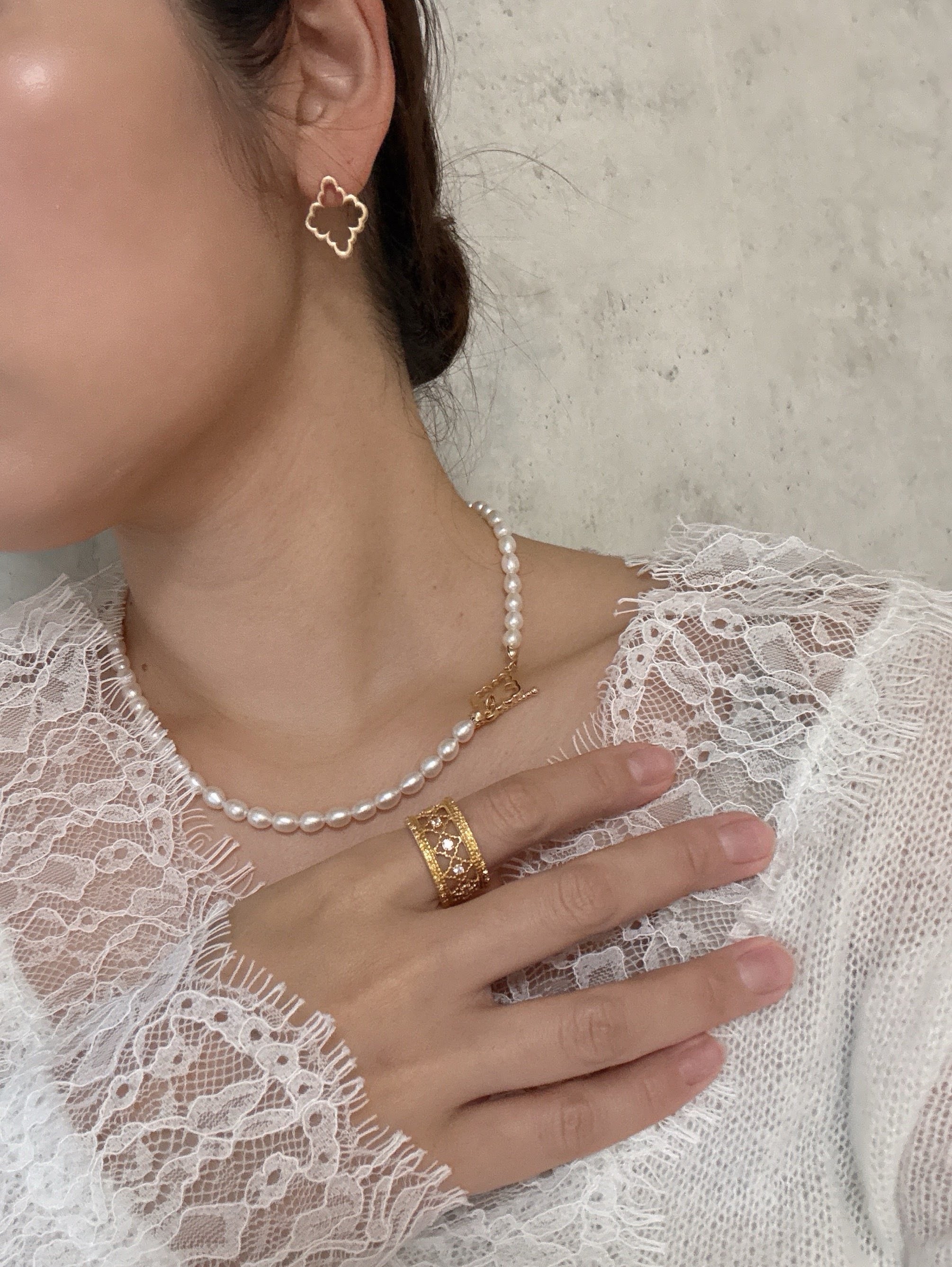 やわらかな曲線と、花びらを思わせるシルエットが耳元に華やかさを添えてくれます。