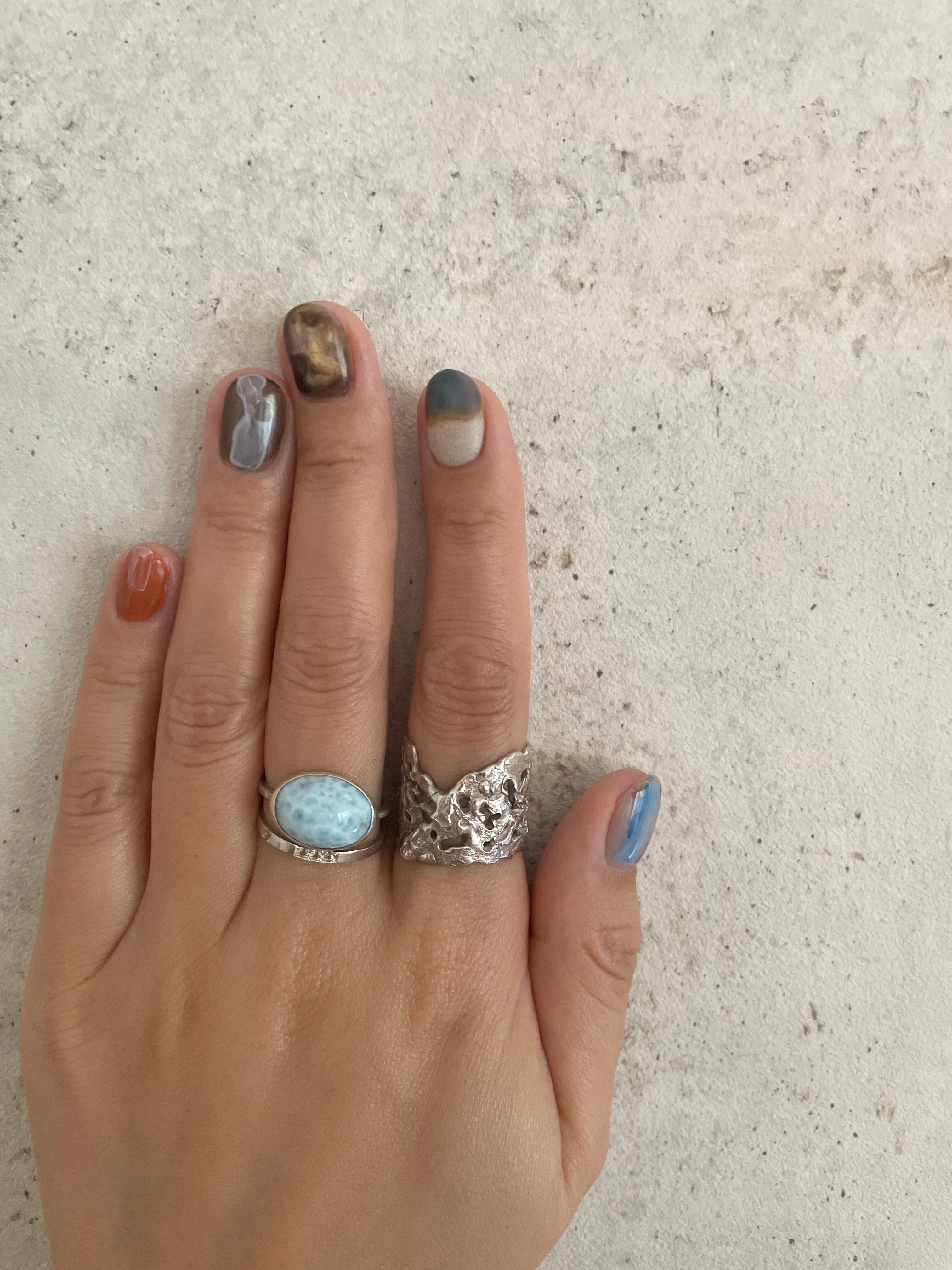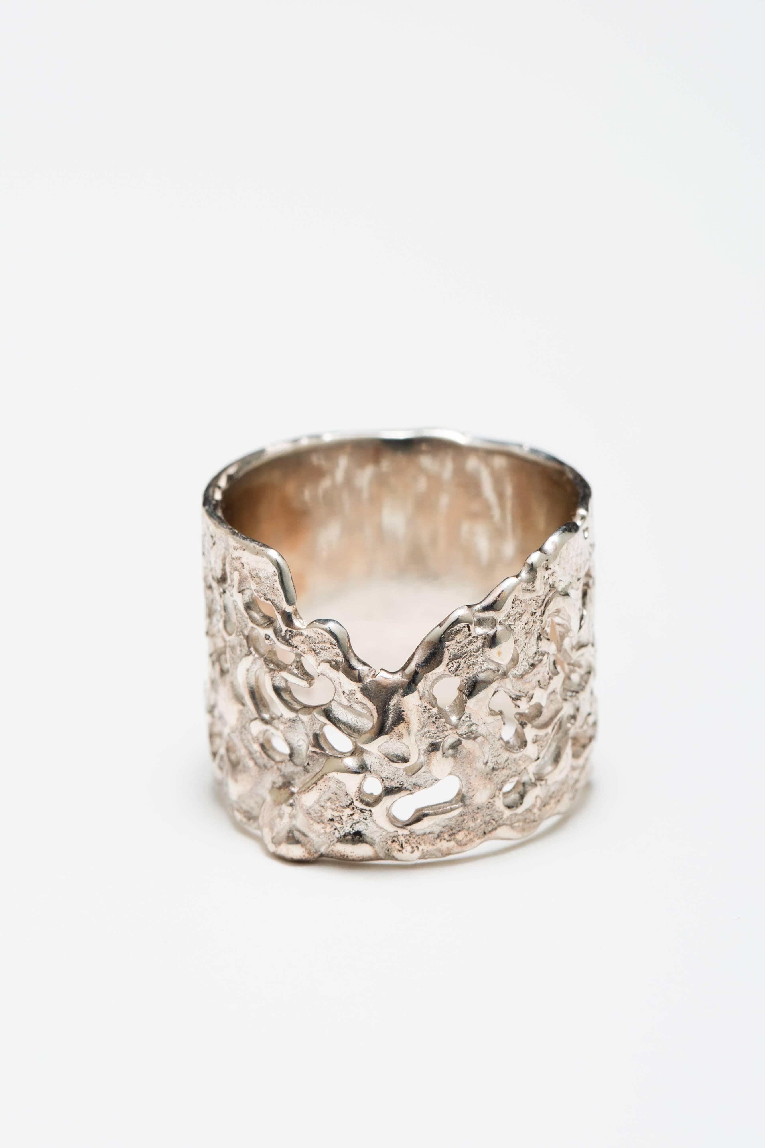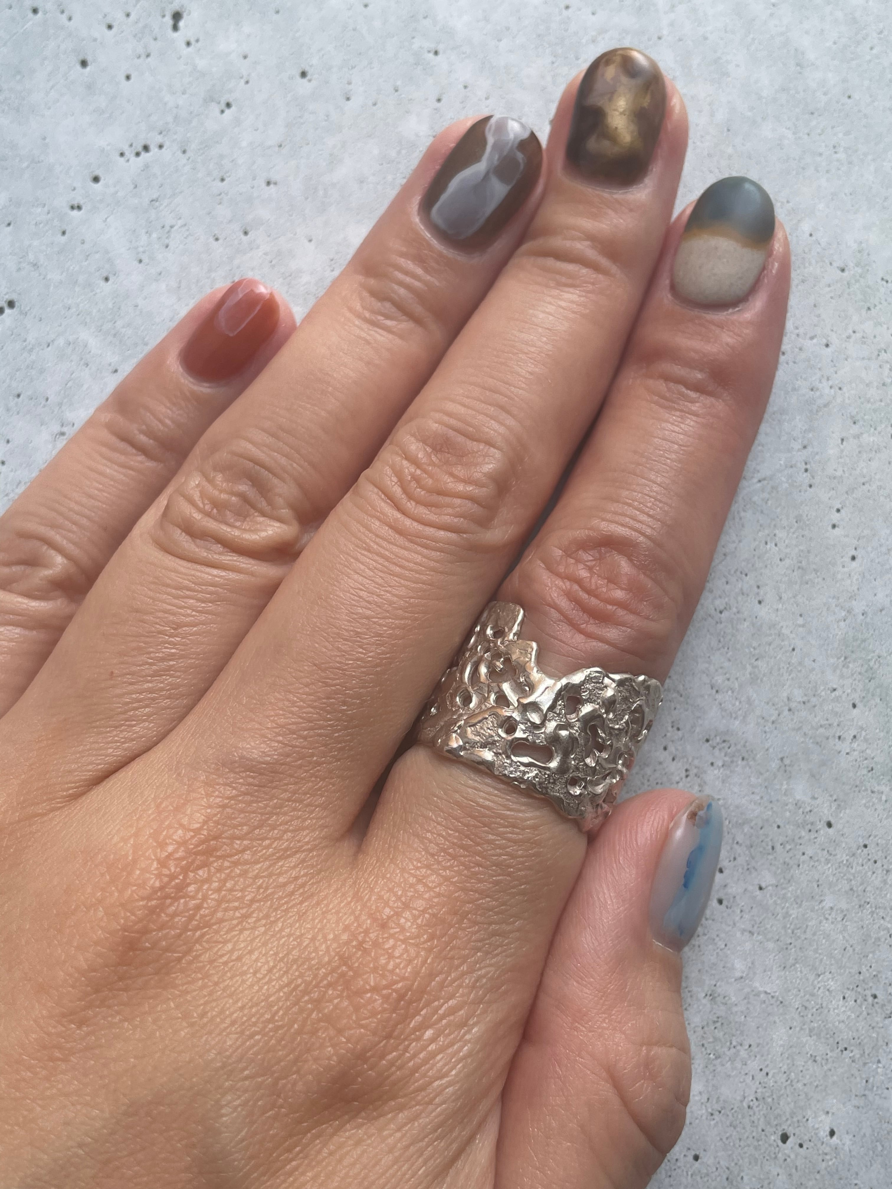 手作業でシルバーを溶かし、溶岩の様な質感を表現したリング。