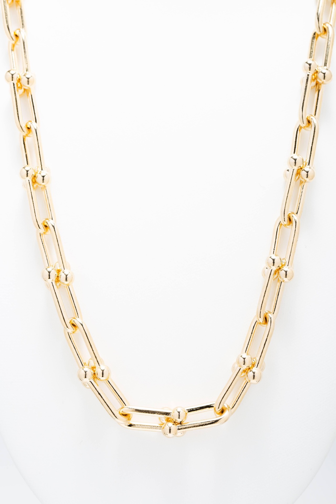 U字型のコマが交互に重なりあったデザインのチェーンネックレスです。